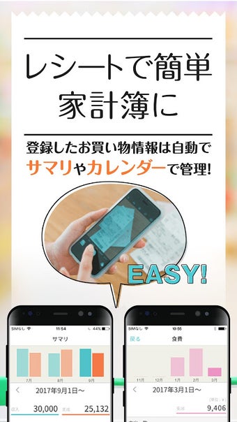 Con questa app, puoi controllare le informazioni di acquisto registrate sullo scontrino con grafici e calendari.